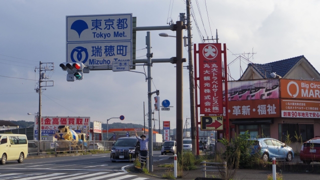 周りの景色に比べ、東京都、瑞穂町の文字だけが、時空が歪んだようにでかくなっている。
