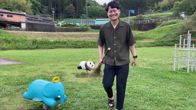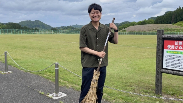 あと、撮影をしていて気づいたのだが、満面の笑みでほうきを握っている人はなんか怖い。