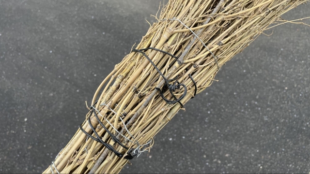 柔らかい枝だけを選んだので地面を優しく撫でられるようになったのと、バラす前よりも枝先に穂を取り付けたので身長に合って使いやすくなった。あと余計なアホ毛を省いたのでいくらか軽量化できている気がする。