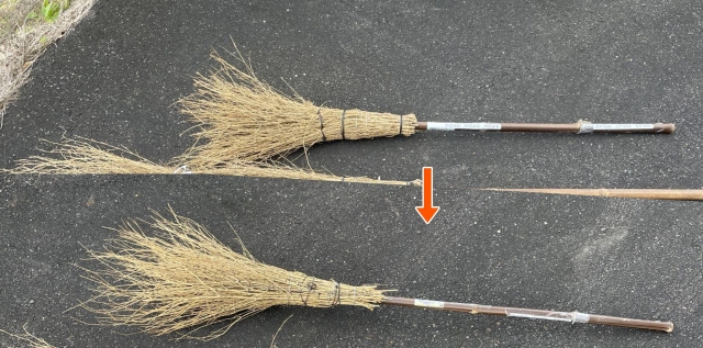 穂を前にずらすほかにもうひと工夫することにした。短くなった別のほうきもバラして、いい枝だけを選り分けて究極至高のほうきを作るのだ。