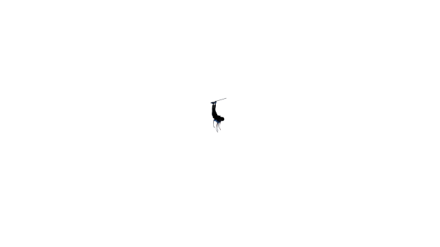 『たまたまメガネが二つ飛んでいる向こうで、棒が落ちた音を聞いている人』のシルエットだ。