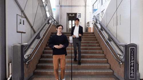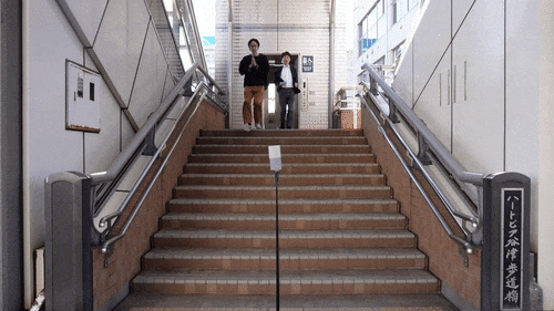 一方でこの動き、エレベーターの前に階段があれば、日常のなかで再現できそうでもある。
