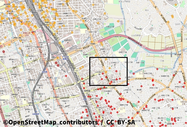 当時広い土地だったところが後に開発され、現在、ビルやマンションが建っている。そういうストーリーのようだ。逆に、当時から戸建て住宅がビッシリ建っているようなエリアはいまもビルやマンションが少ない。可視化して浮かび上がったのは街の歴史だ。