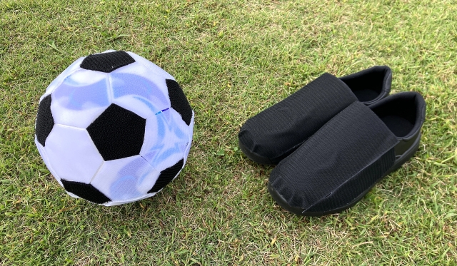 これと同じように、サッカーボールと靴にもマジックテープをつければ、ボールを足でピタッと受け止められるのではないだろうか。