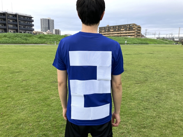 背中に着地したボールが、そのまま背番号をはがして持っていってしまった。