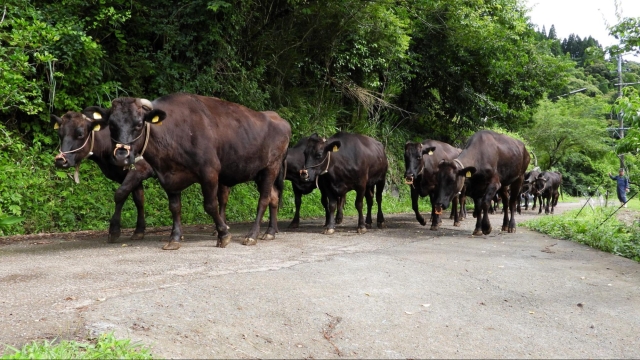 午前9時、さっそく牛たちが牛舎から出てくるというので教えてもらった方向をじっと見る。ちなみに、ここで飼われている牛たちは繁殖雌牛という子牛を生む母牛とのことだ。