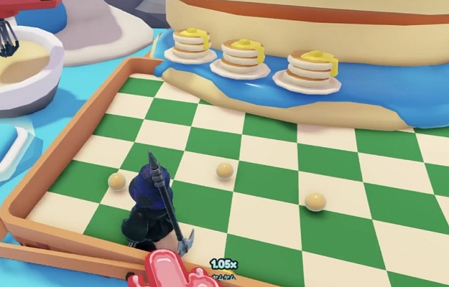 田中:まずフライパンのところに行って、パンケーキを買ってください。