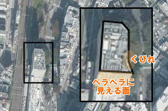 じゃあなぜ、このホテルは側面が見えにくいのだろうか。ホテルを斜めから見たらわかった。