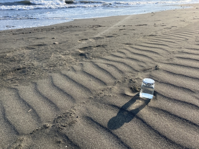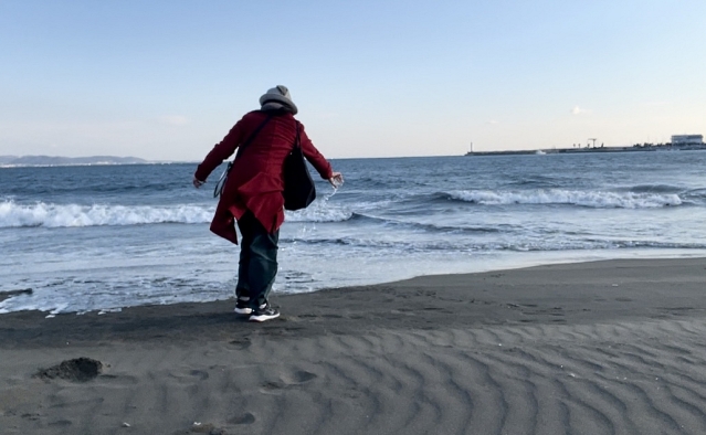 しばらく波の音を聞きながらぼーっとしていたが、気づけば全身砂だらけになっていた。寒いし暗くなってきたのでそろそろ帰ることに。水は久しぶりの実家でゆっくり過ごしてもらおう。