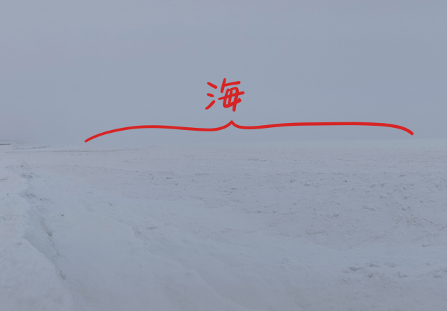 後で調べて見たところ、このように分厚い氷が浜と密着して、氷が陸の延長のようになっている状態のことを「氷野」と呼ぶそうだ。
