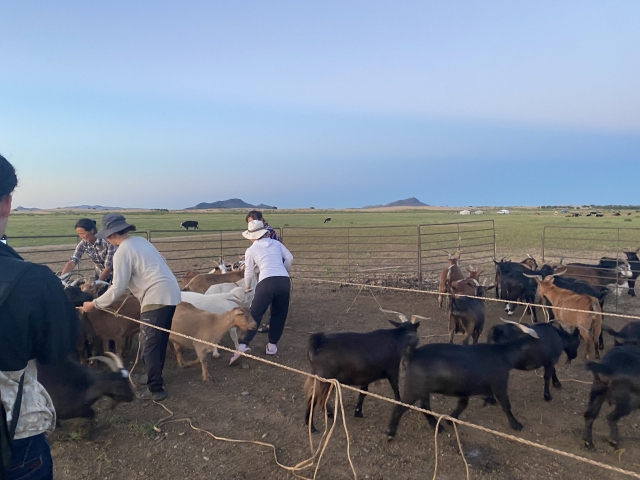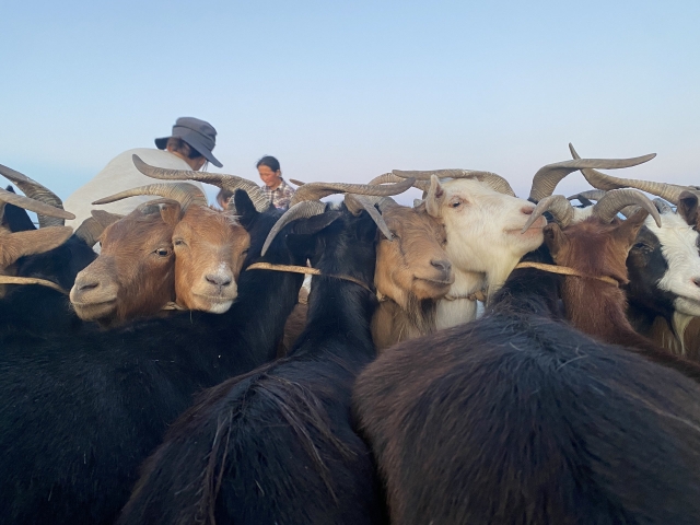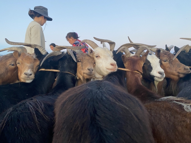 モンゴルでは動物とのいろんなコミュニケーションを体験するが、ヤギは無言の圧まで使えるのか。なかなかやるな。