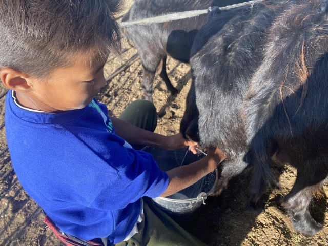 現地の家族は両手でどんどんしぼる。わたしが「もう出ないな〜」と思ったヤギからも、