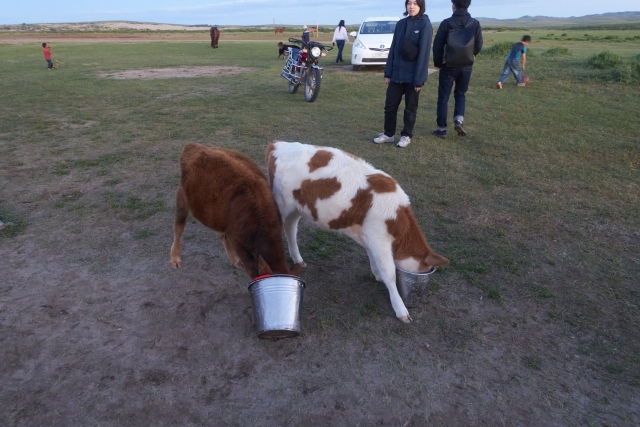ちなみに、ヤギのミルクは栄養があって家畜に飲ませるのも良いらしい。母牛をなくした仔牛たちにも与えていた