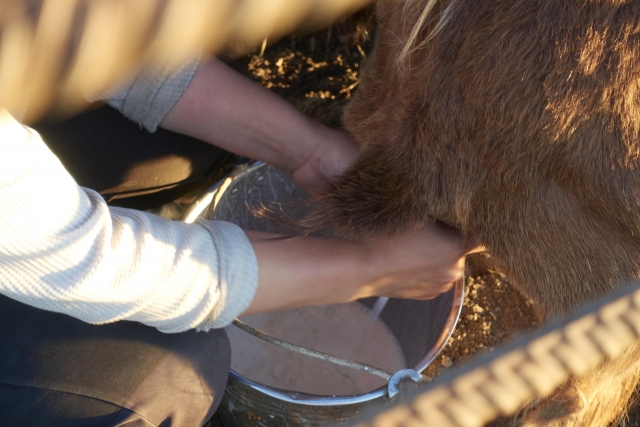 むかし牧場で乳しぼりを体験したときの牛に比べるとずいぶんコンパクトなサイズだが、ギュッとしぼるとミルクが出るのは同じ。