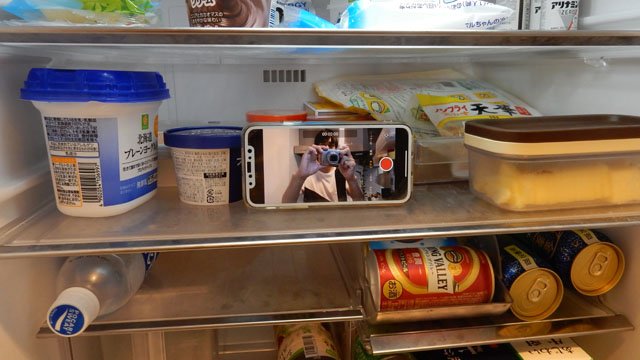 中を物色する様子を撮りたくてこの位置にセットした。これを冷蔵庫からの視線としよう。