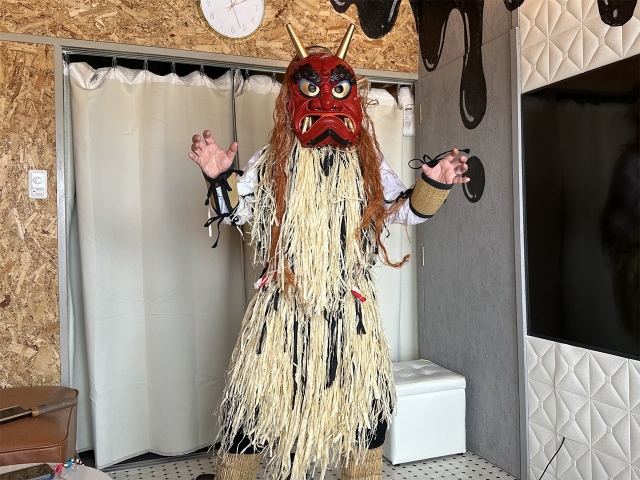 カメラマンの安藤さんが、では3人でこちらをむいてくださいと進行してくれるので3人でポーズを撮る。なまはげとしてお面の下でも同じ顔をしている。ホスピタリティの出どころがない。