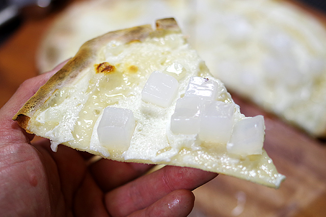 ちょっと想像してもらえるだろうか、クニュクニュのまま熱いナタデココがたっぷりのピザ。知っているけれど知らない味なんですよ。