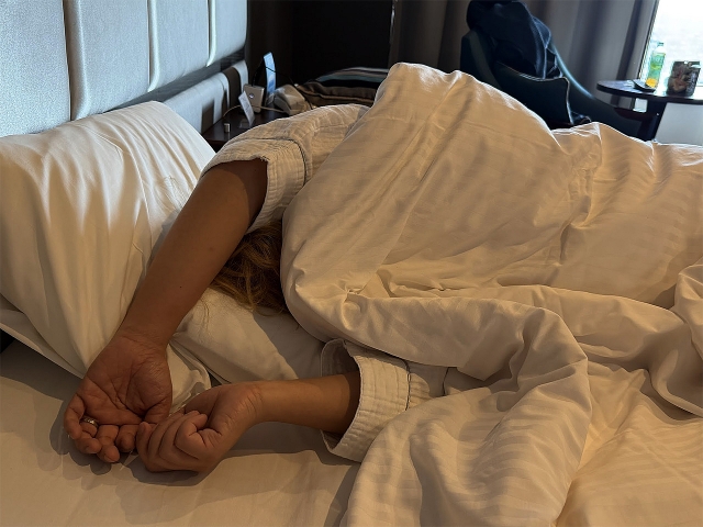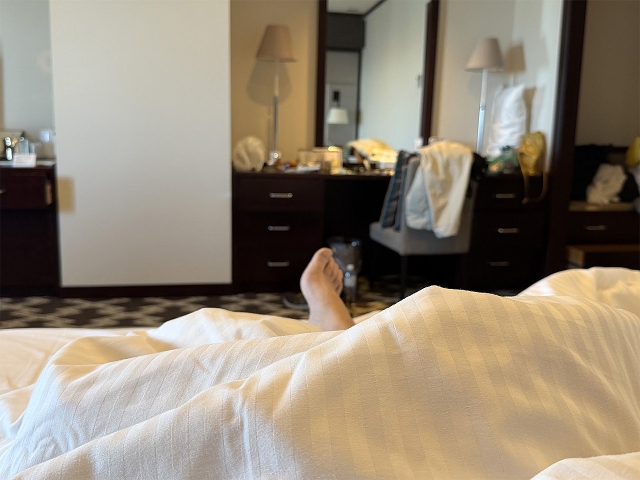 寝不足+満腹+肌触りの良いふとん+静かなホテル、そして背徳感。