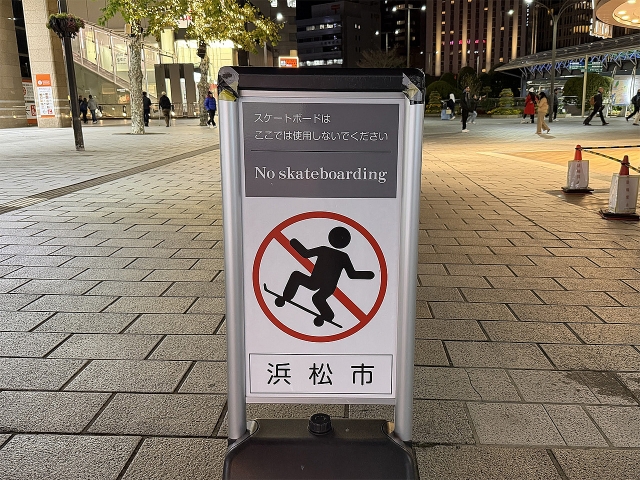 二度寝の旅と思って浜松駅の写真をちゃんと撮ってなかったので、駅前広場のスケボー禁止のピクトグラムで代用した。珍しさで撮ったが「浜松市」の文字が入ってて良かった。