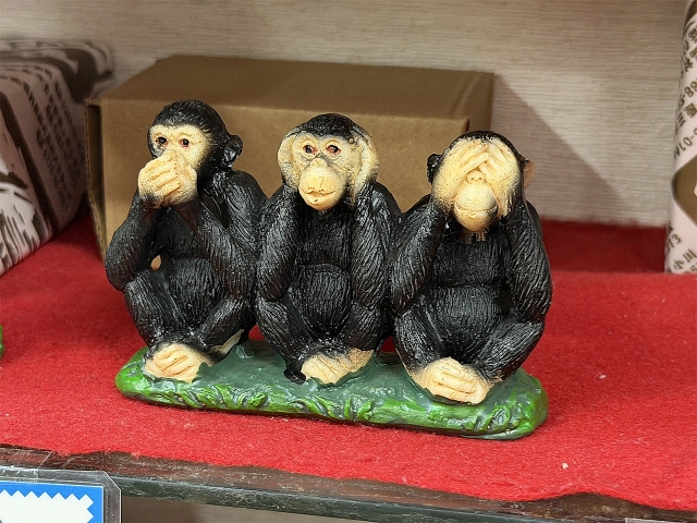 これはどちらかと言えば「見ざチンパンジー言わざチンパンジー聞かざチンパンジー」だ。
