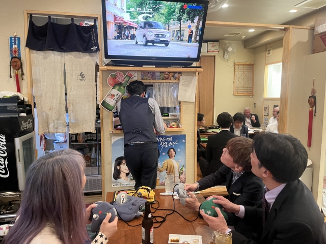 64ぬいぐるみで人と遊んでみたかったので、デイリーライターの皆に居酒屋で協力してもらった。