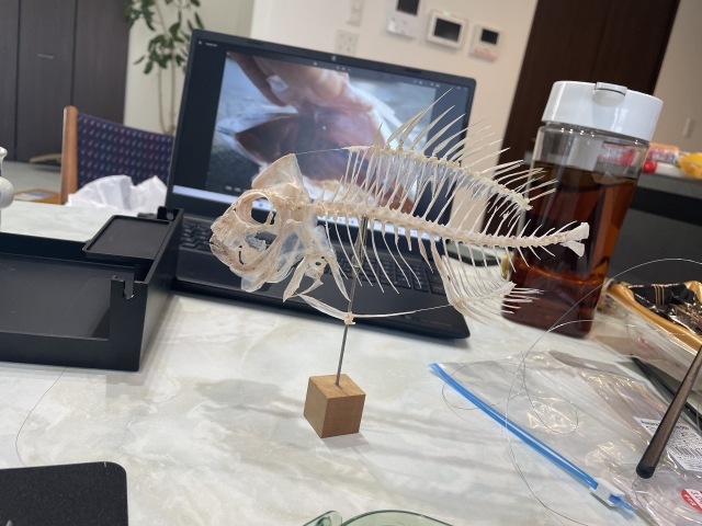 完成した日の夜は、骨格標本を眺めながらもういちど煮魚を食べた。