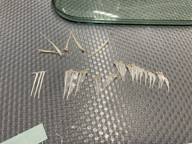あぶないあぶない、慌てて骨を剥がして貼り直す。危うく今までにないかたちの鯛を生み出すところだった。世の古生物学者はこんなまちがいはしないんだろうか。それとももしかしたら、あの恐竜も実はちがう姿だったのかも……!ますますロマンが膨らむのであった。