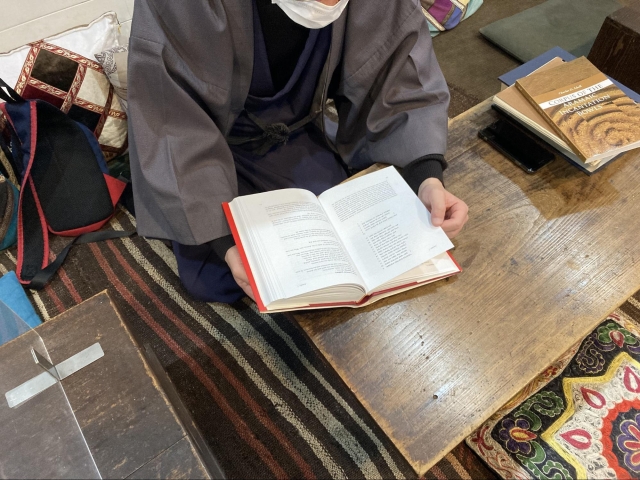 不敵な笑みを浮かべて答えてくれた。以前はイスラエルに住んでいたり、音楽家としての顔をお持ちだったり、奥様とともにこの不思議なカフェを運営していたりと、なかなか一言では言い表せないようですが、とにかくヘブライ語のプロ。だからヘブライ語と近縁のアラム語が読めてしまう訳です。