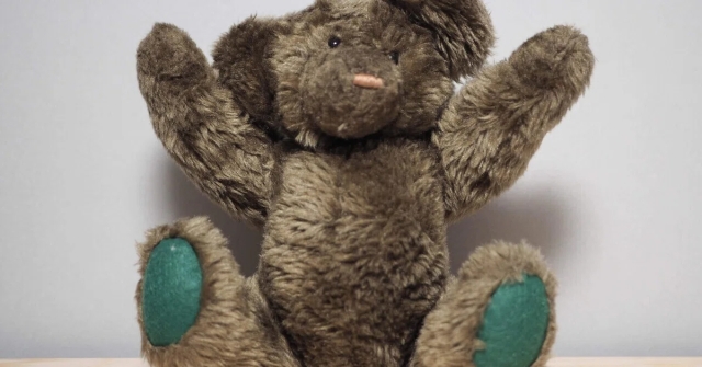 はじめまして。わたしは最近、古いぬいぐるみを購入しました。オリーブ色の毛のテディベアで、足のうらの緑色がチャームポイントです。