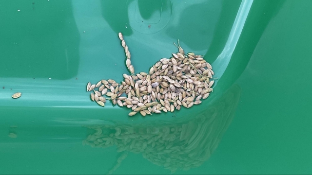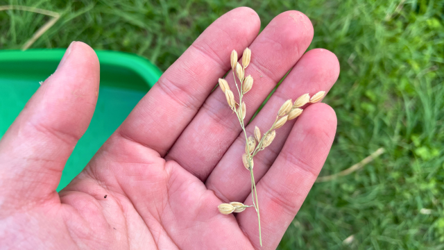 数十秒探してやっと一粒の籾種を見つけた。うれしい。