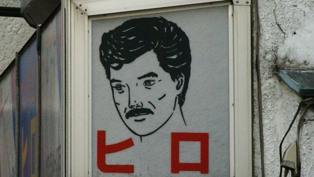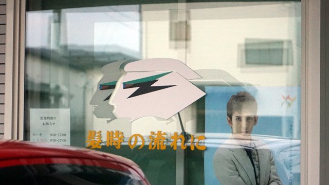 ジェームズ・ディーンがモデルなのではないかと思われる。私が地元で「理由なき散髪」と呼んでいた看板である。時は移ろい、この看板はすでに存在しない。