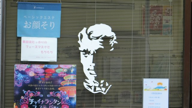 こちらも真横アングルである。上品に撫でつけられたヘアスタイルは音楽室の壁に貼ってあったドビュッシーを思い出す。この下町の印象派は埼玉ではガラスにシート貼りされていた。