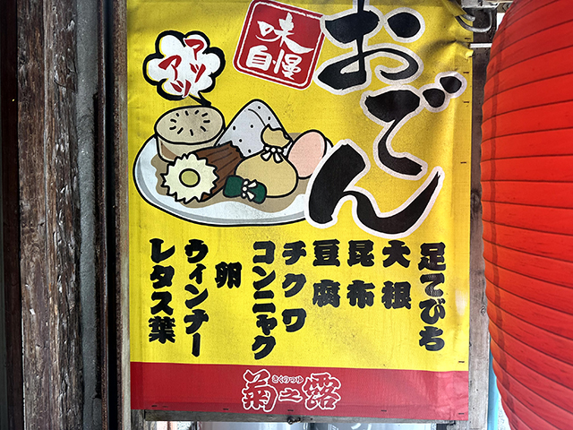 看板メニューのおでんのダシは創業当時から受け継がれているものらしい。