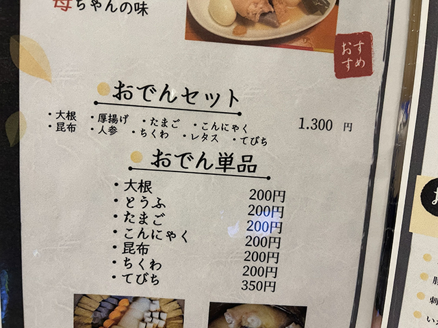 おでんセットは1,300円。