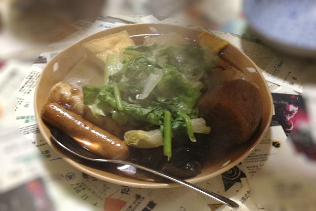 昔の写真でぼやけていて恐縮なのだが、こんな感じが標準的な沖縄おでんではないかと思われる。
