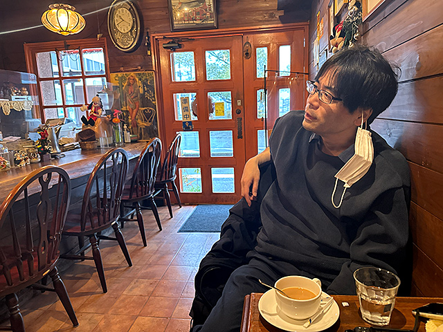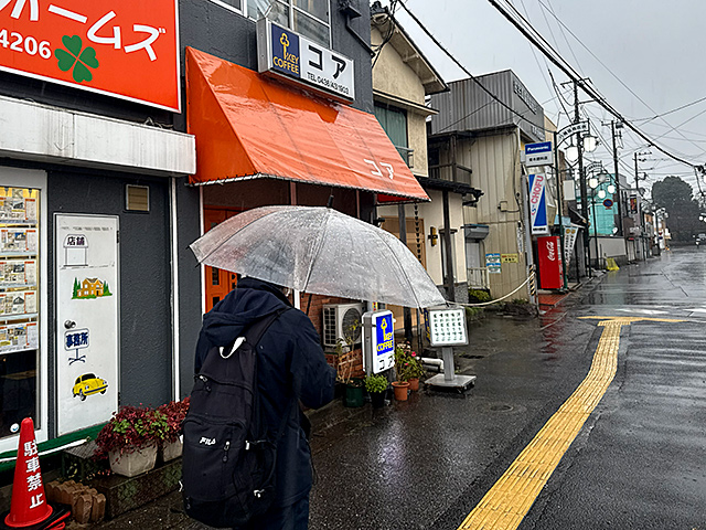 関東では一カ月ぶりに降ったまとまった雨に体が冷える。どこかで座って休みつつ作戦会議をしたいですねと駅前に戻ったら、さっき通ったときは閉まっていた喫茶店が看板を出していた。10時開店なのだろう。