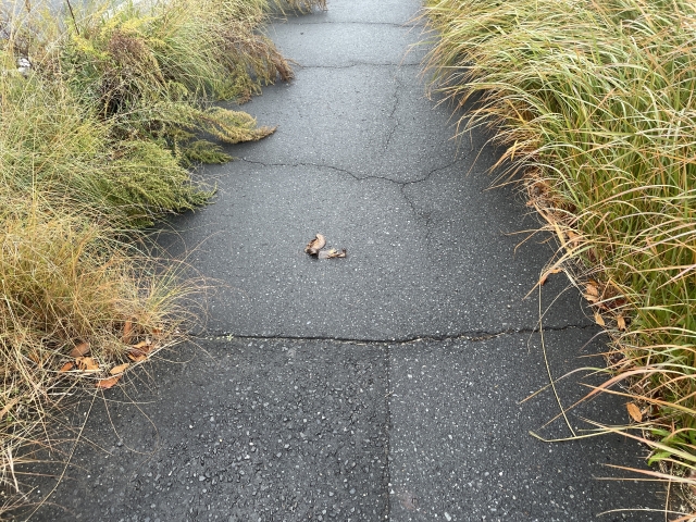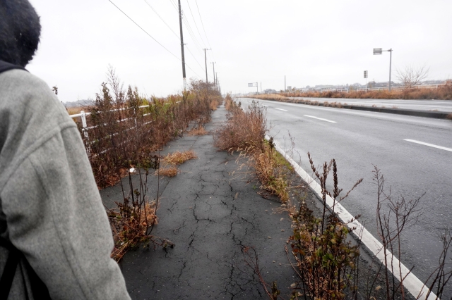 歩道にゴミがたくさん落ちているのを見て、「歩き食いしながらこの道を通る人がいるんですね。人の暮らしを感じる」と佐伯さん。
