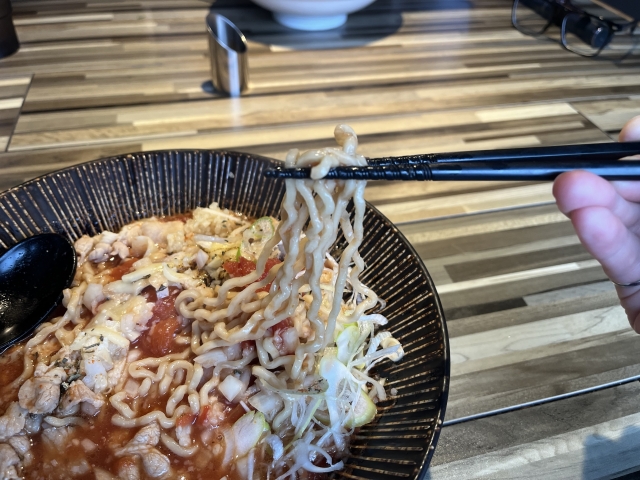 バラ肉がたくさん入っているが、トマト味のスープなのでさっぱりしていて食べやすい。