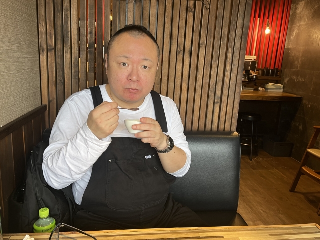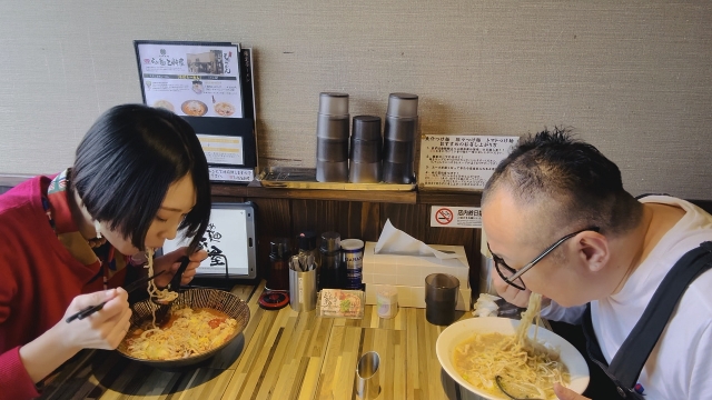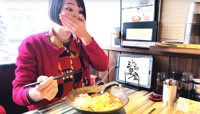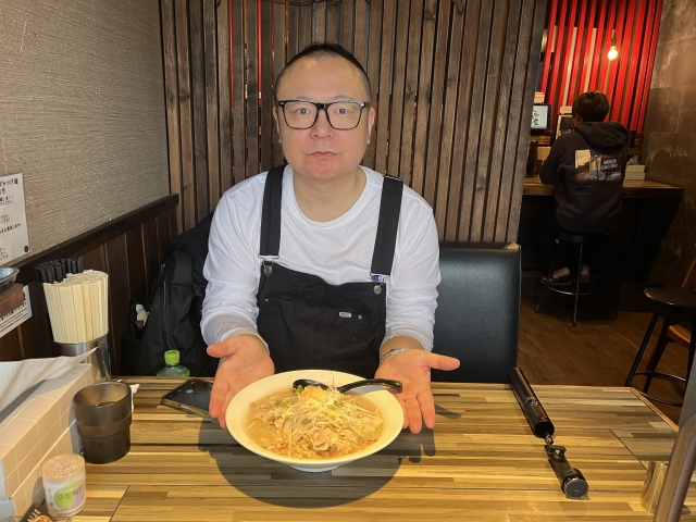 言われてみれば、らーめんにしては平たい皿か……?特に味に対してのコメントはなく、皿についての指摘をしていた。器にこだわりがあるタイプなのだろうか。