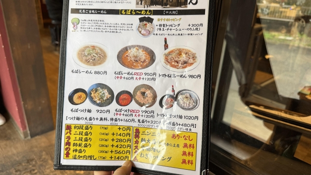 待ちながらメニューを見る。色々あるけど、やっぱりここはもばらーめんを食べたいところ。