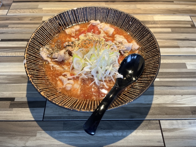 「もばらーめん 」と言うのは、「もりもりのバラ肉らーめん」を略した名称らしい。バラ肉の量を最大神盛り(350g)まで選べるが、もばらーめん初心者なので、初段盛り(70g)にしておこう。私はトマトもばらーめんにした。