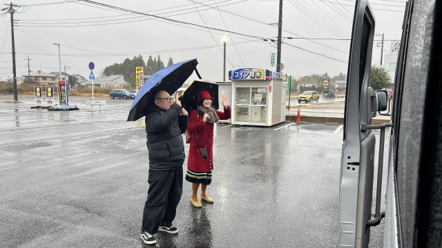 途中休憩で降りたパーキングで「岡村さん、今日はよろしくお願いします!」と声をかけたら全然違う人だった。黒いダウンの人という認識でいたら、似た服の人がたくさんいることに気づく。