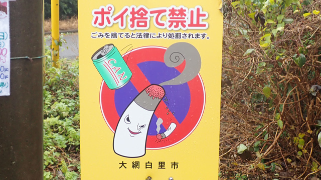 ポイ捨て禁止看板の吸いがらが見るからにバッドボーイでTシャツにしたいと思った。