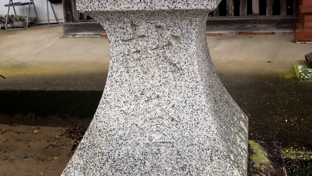 立ち寄った太政大神(神社)で西村さんが石灯篭の1点を見つめ、撮影していた。