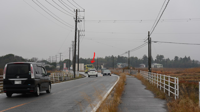バス通りに入ってすぐ、いそいそと歩く我々を1台のバスが追い抜いていった。時刻表上ではここにいないはずのバスだ。ネコバスだろうか。