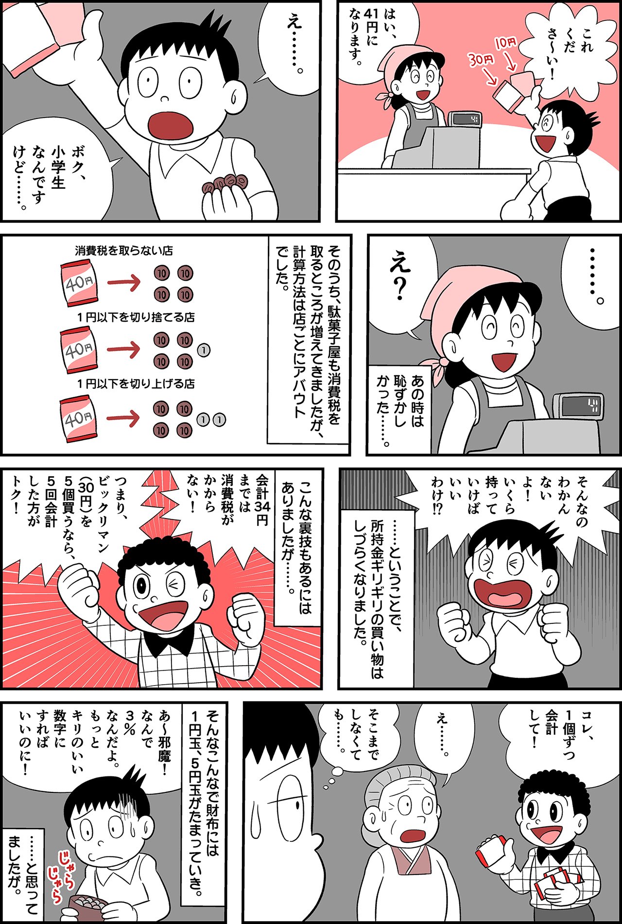 むしろ、駄菓子屋で売上3000万円もいくのかよという感じなので、消費税を取っていた駄菓子屋は便乗値上げだったのでは!? 40円のお菓子に、1円以下切り上げで2円の消費税をのっけるのは法律的にアリだったのか!?