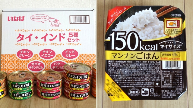 ごはんと缶詰のカレーの組み合わせですね。マンナンご飯は林さんの、缶詰は古賀の推しです。