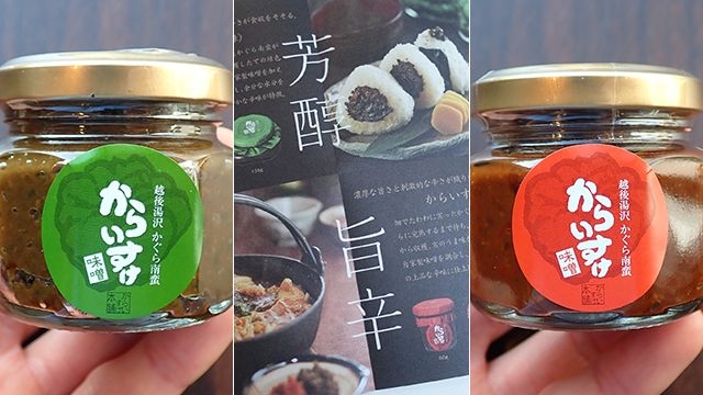 「かぐら南蛮」という唐辛子が新潟にあって、それと味噌、みりん、酒で作る「かぐら南蛮味噌」という料理というか、ごはんのお供みたいなものがあるんですね。この「からいすけ」はその商品名なんです。