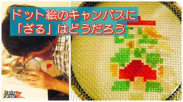 ここからがようやく本題。ざるでこんなふうな模様が作れるなら、何か書いてみようじゃないか、というわけです。