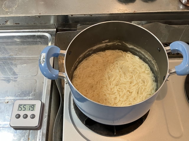 お湯の水位はさがり、麺は存在感を増し、やわらかくなっていくが、それは本当に少しずつで、あっと驚くようなことは起きない。
